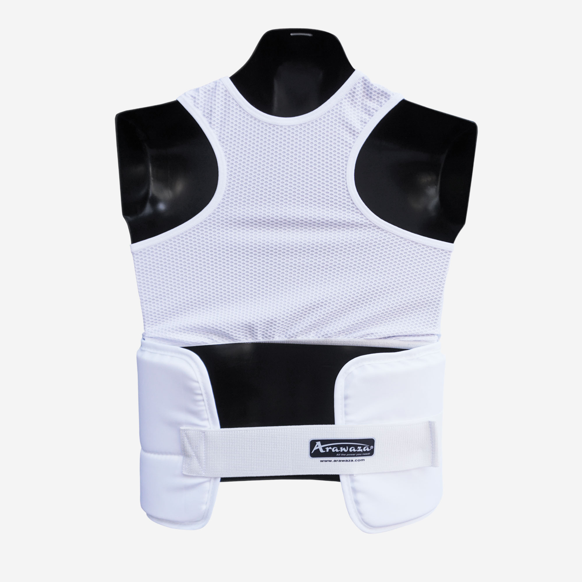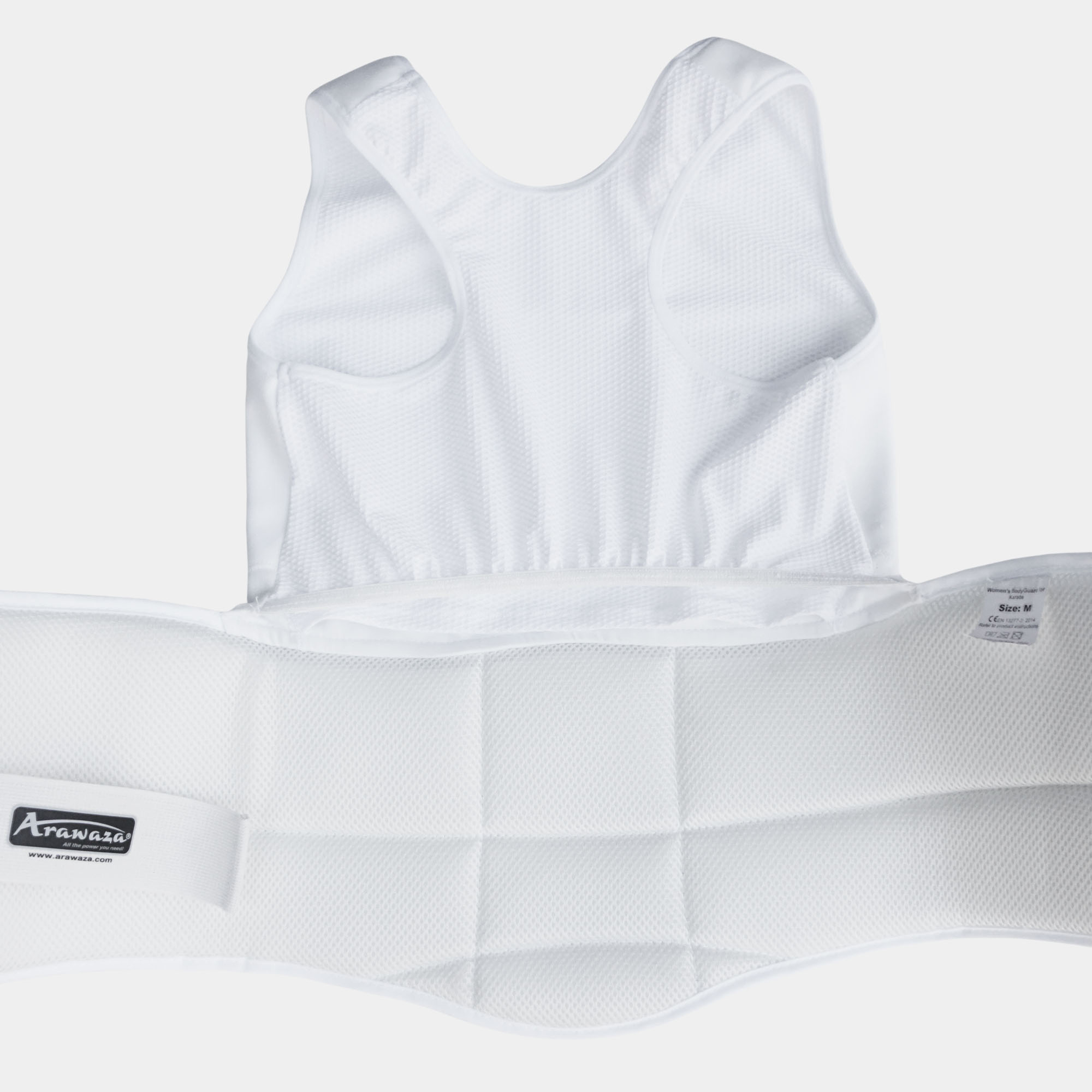 El protector corporal para mujeres de competencia Arawaza® WKF aprobado con bolsillo insertado está especialmente diseñado para proteger el cuerpo y el pecho cuando se combina con el protector de plástico Arawaza®, también se adapta y funciona para mujeres en karate y debe usarse debajo del uniforme para proteger el Cuerpo del practicante de Karate durante el entrenamiento y la competición.